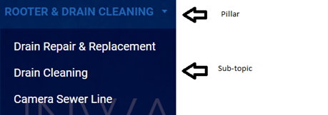When identifying content pillars for your website, stick to less than 10 topics (10 being a relatively high amount). These topics will be broad, with more specific topics branching up to them. With website architecture, this is envisioned as a subfolder with additional URLs below it. Gather keywords related to both the pillar and the sub-topics.