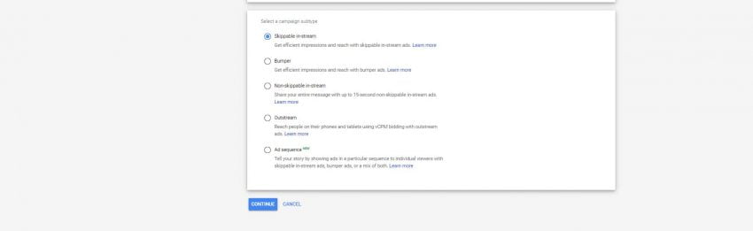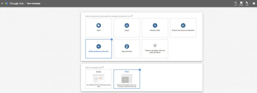 Next, you’ll want to create a new video campaign and select the closest goal to your campaign. From there, you’ll select the type of campaign format you’ll be running with.
