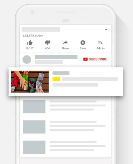 Video Discovery Ads are ads appearing next to related YouTube videos, on the YouTube mobile homepage, or within a YouTube search result page. Since these ads will only show a thumbnail image of your video with text, a cost will only incur when a user decides to click the thumbnail to watch the video. These ads can be used for brand consideration and loyalty, and for campaigns without a specific goal.