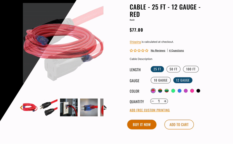 An attempt was made to implement both sliders using both functions due to Slick’s “filter” and “unslick” usage settings. Initially, the filtering and unslick settings were successfully used. However, when the code was implemented alongside Shopify’s frameworks, too many complications popped up (like dealing with unavailable products or products being inputted differently for the same item). Trying to account for all these variables while grabbing a variant’s three options still meant many failed attempts. This was solved by implementing a web component element.