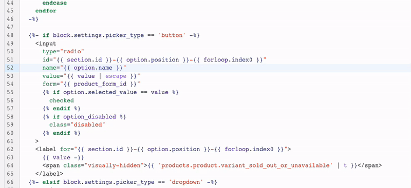 Just above name="{{ option.name }}", we’re going to squeeze in our class attribute.