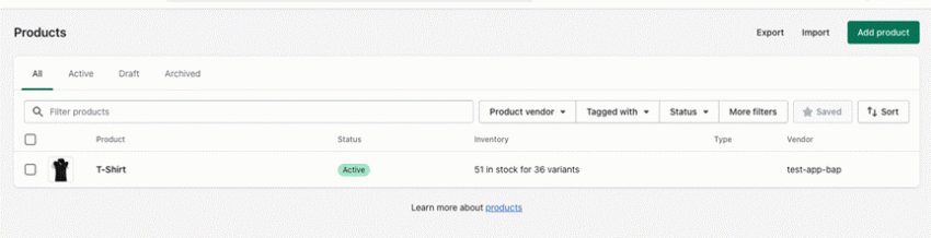 Go back to Shopify’s admin page. On the left menu, select ‘Products’. Select an ‘Active’ product or ‘Add product’.