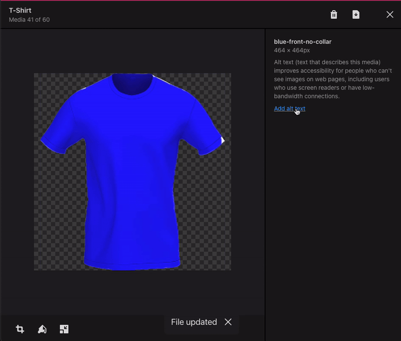 On the right side, click ‘Add alt text’. Set alt text. Save. Repeat. ‘Add alt text’. Set alt text. Save. Repeat.