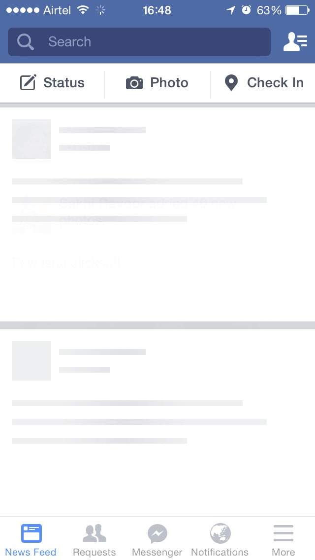 To avoid losing your users in these moments, incorporate fun loading animations or utilize skeleton content. Loading animations will distract users momentarily and give them something fun and engaging to interact with. On the other hand, skeleton content, or a skeleton screen, will help create an illusion that the load time is shorter than it actually is. Below is a great example of how Facebook uses skeleton content to give the feeling of a shorter load time.