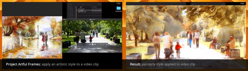 With this program, you can take a video clip and add a painterly style to every frame. In the example shown here, the designer has added the brush stroke style from a Van Gogh painting to a video clip of people walking along a street. This can be applied using a number of painting media like oil painting or watercolors. Project Artful Frames is not limited to just painting styles though. You can also apply photographic content to this stylistic conversion of video content.