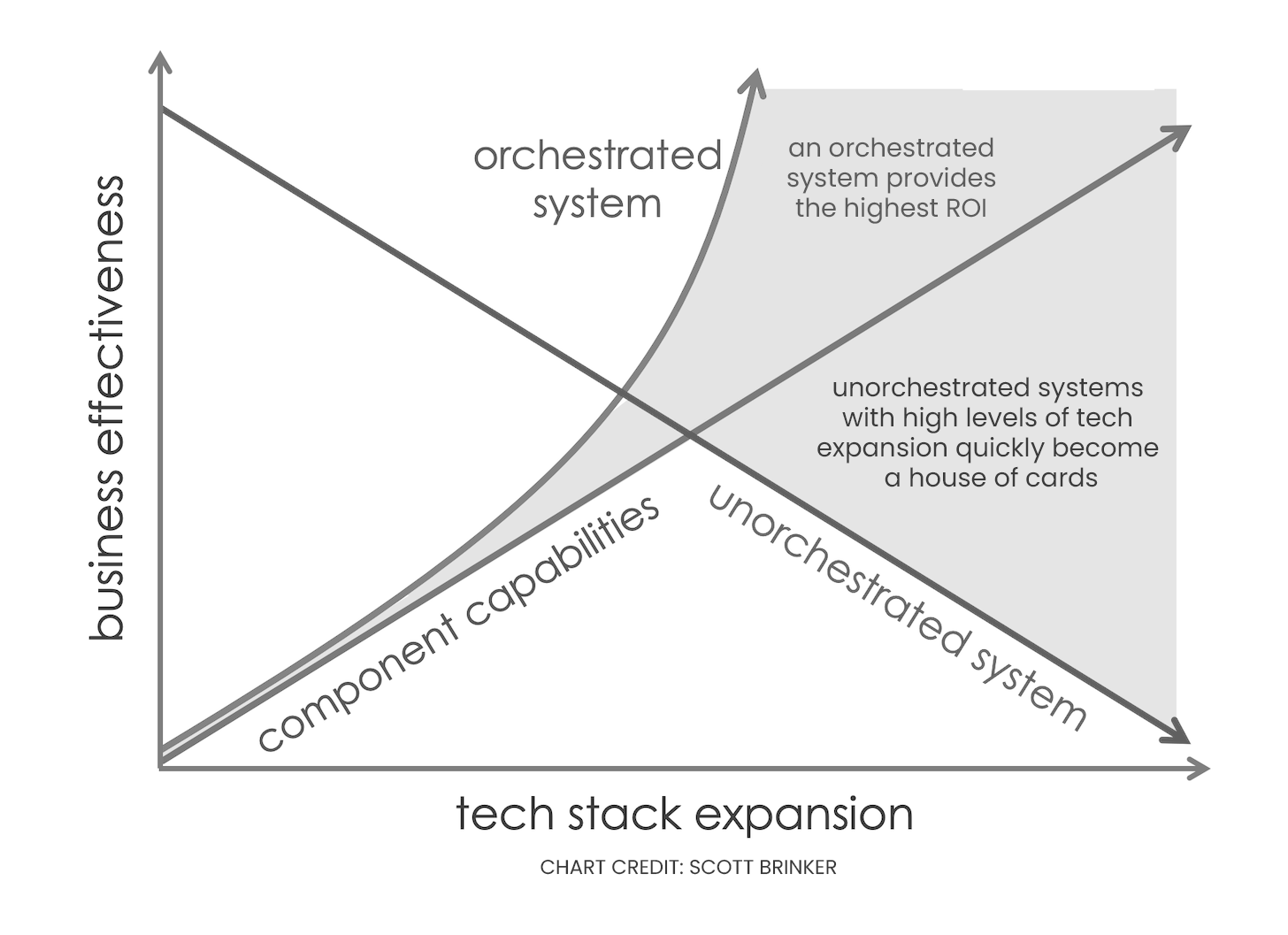 This chart from Scott Brinker’s piece in Chief Martec – demonstrates the balance of business effectiveness and technology stack expansion.