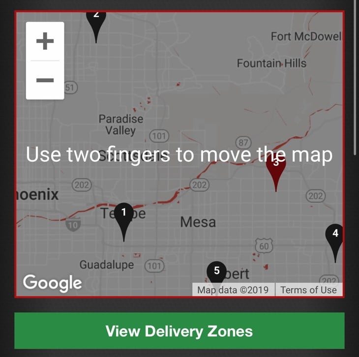 Maps pose certain usability problems for touch devices. For example, full width maps on mobile can lead to scrolling traps. A scrolling trap is when the user attempts to scroll down the page but finds themselves stuck scrolling within the map instead. Not only did this provide the user with a different experience than expected, but it also reoriented the map away from its original location. If the user did wish to revisit the location on the map, they would either need to refresh the page or attempt to relocate the original location by scrolling in and out of the map. Here’s to hoping there was a marker on the map in the first place!