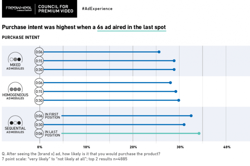 Important note: The audience’s purchase intent is highest when your six second ad appears after your longer ad.