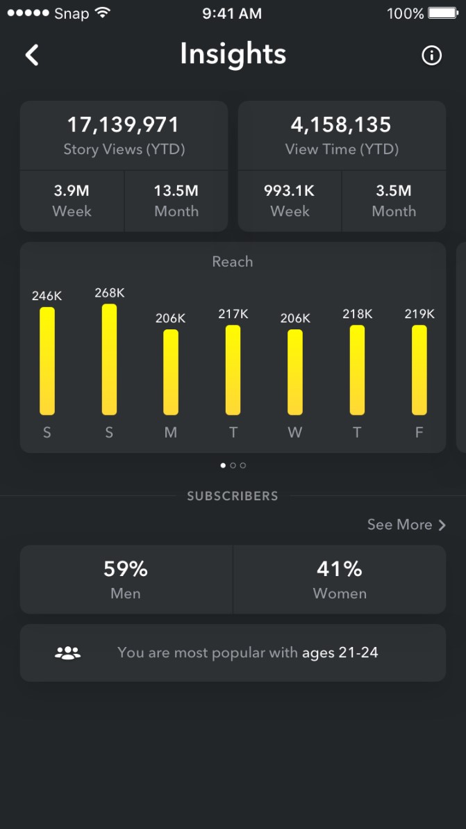 Over on Snapchat, Adweek added their own advertising campaigns, resulting in a 10% lift in conversion rate and a 15% lift in ROI. Snapchat has also recently added an addition of audience insights where brands receive free stats based on how many users visit their locations. These stats give insight to where your viewers are located, their demographic, interests, and the devices they use.