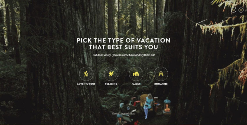 Here is a website example for Humboldt, a county in California that offers a variety of things to do for family vacations, romantic getaways, and more. Unlike a typical vacation destination that lists all of their attractions for users to read through, their website uses fun designs, catchy content, and interactive functionality, making it exciting to explore what Humboldt, California has to offer.