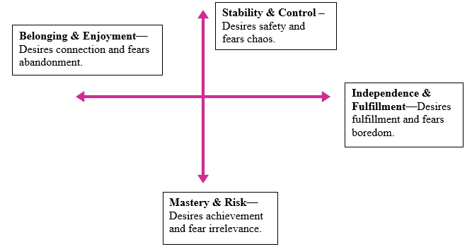 Based on motivational theory, brand archetypes are organized across two axes: Independence/Belonging and Stability/Mastery. As result, these poles reveal four distinct categories of archetypes defined by core desires.